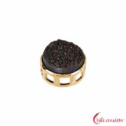 Anhänger Achat Druzy schwarz (gef.), 1,6cm, vergoldet (VPE: 1.0 St./pc)