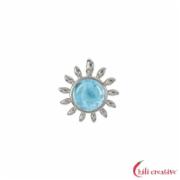 Anhänger Larimar rund (10mm) mit Sonnenstrahlen, 2,0cm, platiniert (VPE: 1.0 St./pc)