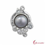 Süßwasserzucht-Perle grau sowie sieben weiße Topase in verschiedenen Größen