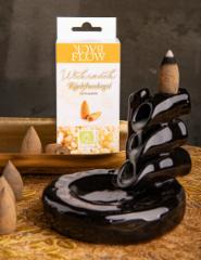 Rückflusskegel entfalten beim Verglimmen einen geheimnisvollen Rauch, der wie ein sanfter Nebel nach unten strömt und in stillen Wellen einen mystischen Wasserfall aus Duft erschafft.