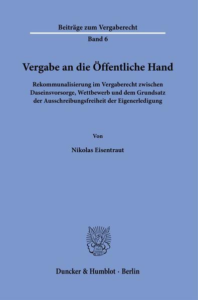 Rekommunalisierung im Vergaberecht zwischen Daseinsvorsorge, Wettbewerb und dem Grundsatz der Ausschreibungsfreiheit der Eigenerledigung.