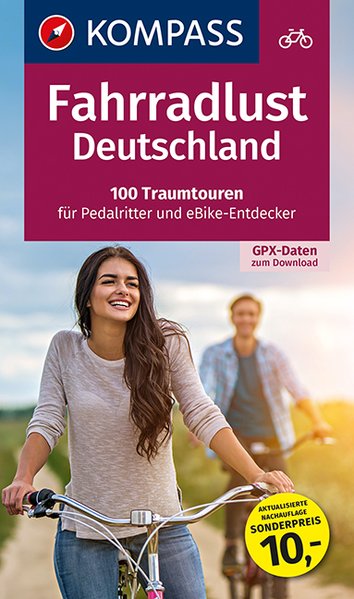 Mit dem Titel FAHRRADLUST hat KOMPASS 2018 die Verkaufslisten angeführt. Erstmals sind in dem Sammelband unsere 100 beliebtesten Tagestouren von Rügen bis ins Allgäu erhältlich. Detailliert beschriebene Touren für 'Pedalritter und eBike-Entdecker' laden dazu ein, Deutschland zu erradeln
