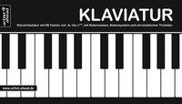 Ausklappbare Klaviertastatur mit 88 Tasten von A'' bis c''''', mit Notennamen, Notensystem und chromatischer Tonleiter (360g-Kartonpapier).