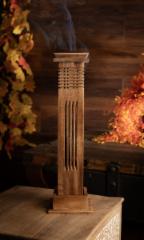 Zauberhafte Räuchersäule wie aus Maharadschas Zeiten. Durch die vielen ausgeschnitzten Formen entstehen faszinierende Rauchsäulen beim Verglimmen der Stäbchen. Ein besonderer Vorteil dieser Halter ist, dass die Asche sauber im Inneren aufgefangen wird.