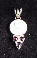 Anhänger mit zwei runden und einem tropfenförmigen Granat.