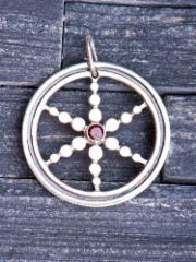 Dieser Anhänger basiert auf der Theorie der punktenergie. Der unendliche Raum des Universums ist gefüllt mit unzähligen herumschwirrenden Elementarteilchen. Diese Teilchen sind selbst am sogenannten „punkt" (stellen mit hohen Minusgraden, an welchen alles still steht) noch aktiv. Es ist wie eine Art Grundenergie, die selbst im leeren Raum existiert. Man geht davon aus, dass aus dieser Energie die ganze Schöpfung entstanden ist. In unserem Soul Anhänger steht der rote Granat in der Mitte symbolisch für diesen punkt.