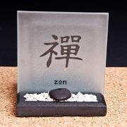 Zauberhafte kleine Zengärten mit Teelicht. Durch die stabile mattierte Glasplatte leuchtet das entsprechende chinesische Schriftzeichen und die Affirmation zart hindurch. Davor sorgt ein kleiner Zengarten mit Räucherstäbchenhalter für eine wohlige Atmosphäre. Das ideale kleine Geschenk für Jedermann und natürlich auch für sich selbst.